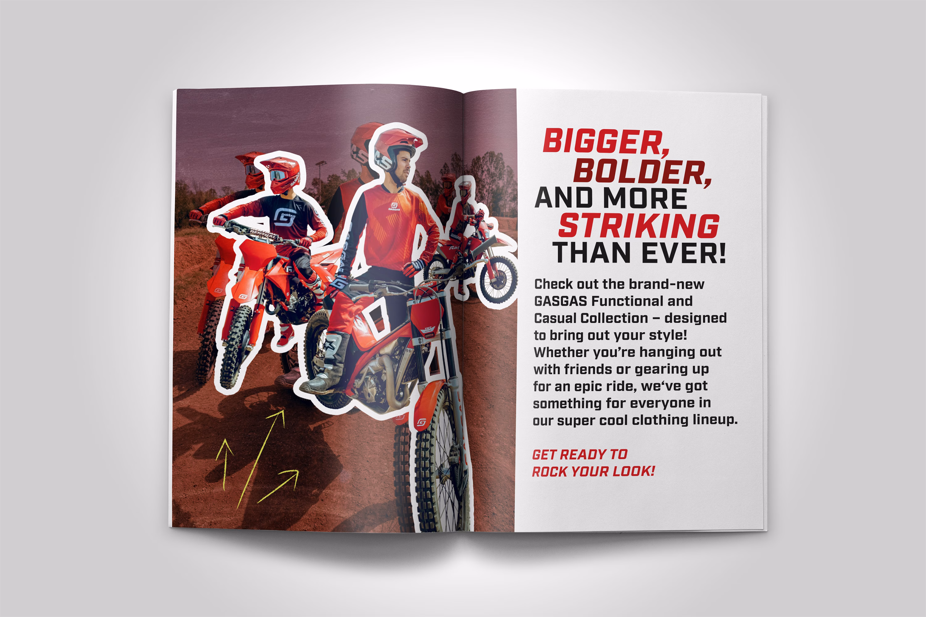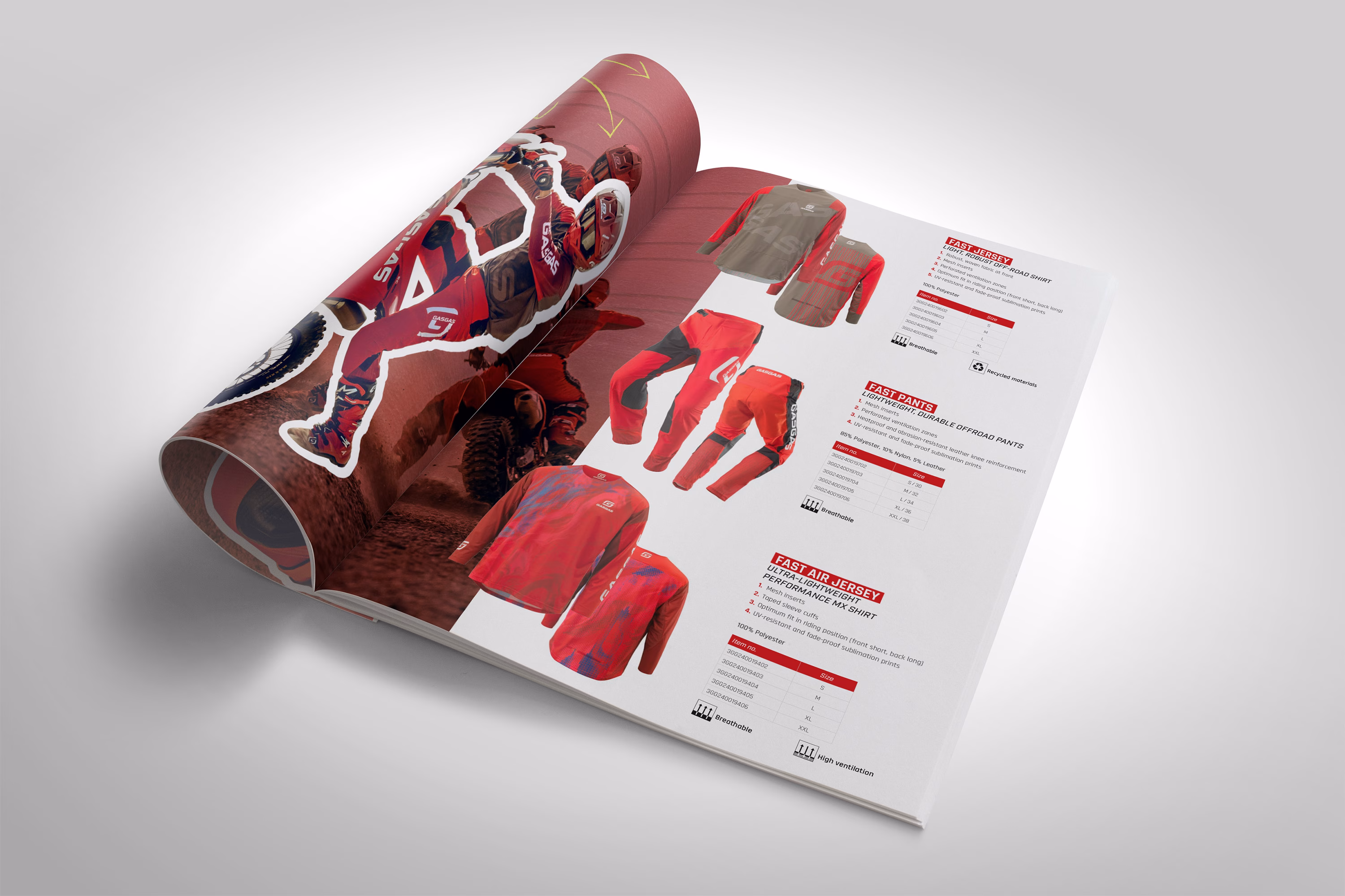 Der GASGAS Apparel Folder 2024 präsentiert die neueste Funktions- und Freizeitkollektion, die entwickelt wurde, um herausragenden Stil mit praktischer Performance zu verbinden. Egal, ob Sie mit Freunden entspannen oder sich auf eine epische Fahrt vorbereiten, diese Kollektion bietet für jeden GASGAS-Enthusiasten etwas.